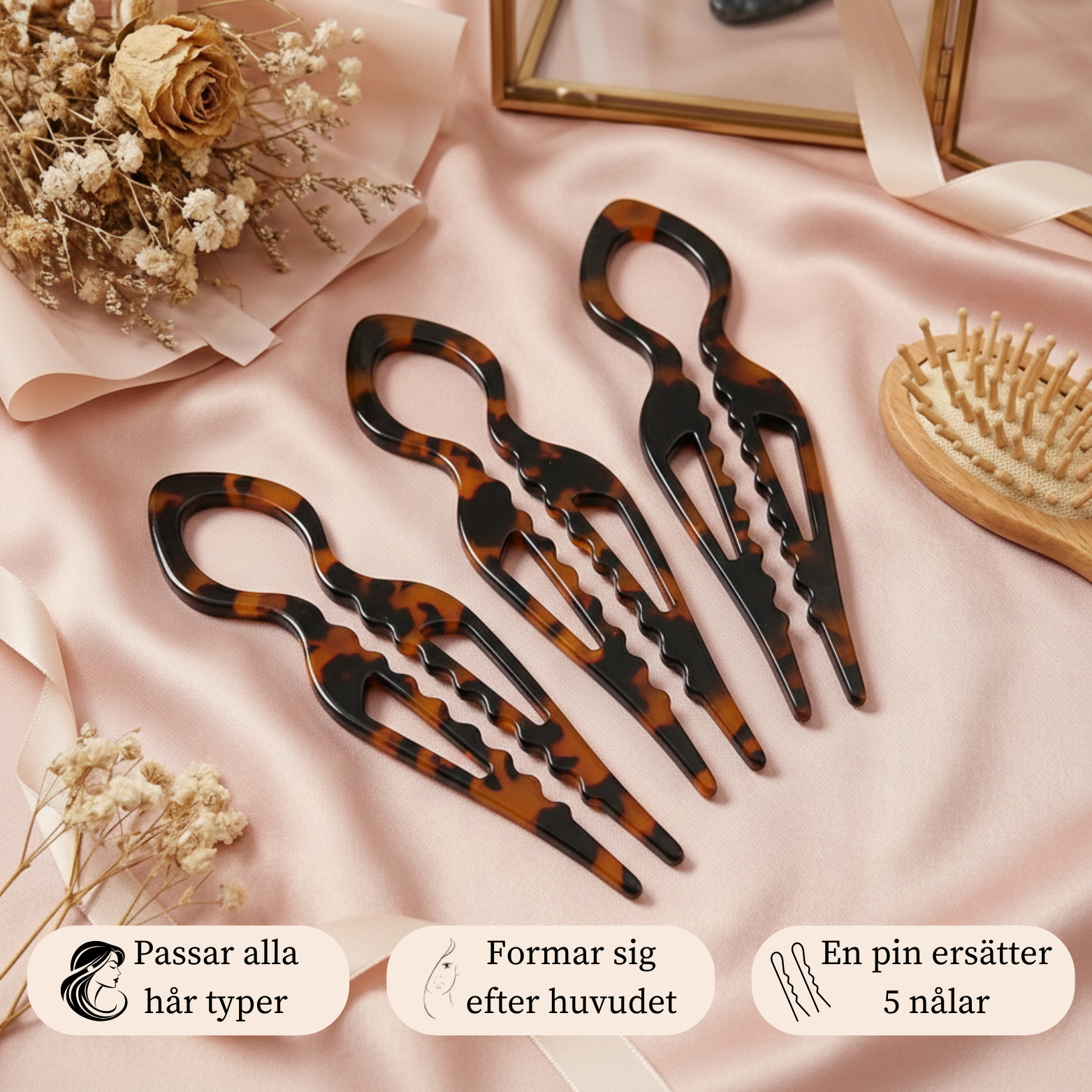 En skonsam hårpinne som håller håret på plats utan drag, smärta eller metall.